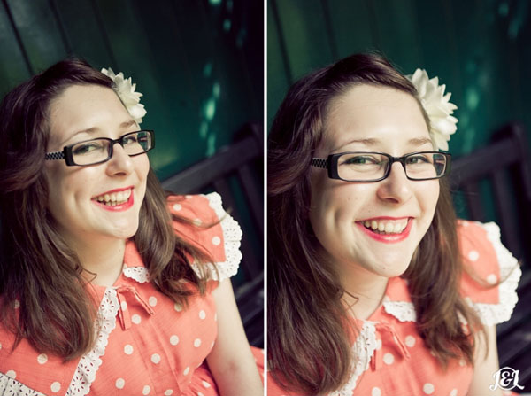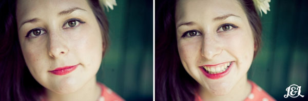 مانند لبخند، شما باید طبیعی به نظر برسید، نه طوری که انگار شما را مجبور کرده اند که بخندید. این دو عکس ممکن است در ابتدا یک شکل به نظر برسند اما در عکس سمت چپ سوژه به زور خندیده است، اما عکس سمت راستی شکار خنده سوژه است. تفاوت این دو خیلی زیاد است! خنده به صورت غیر ارادی تغییرات زیادی در صورت شما ایجاد می کند، اما در خنده عمدی در صورت شما تغییراتی که باید انجام نمی شود و خنده مصنوعی دیده می شود.