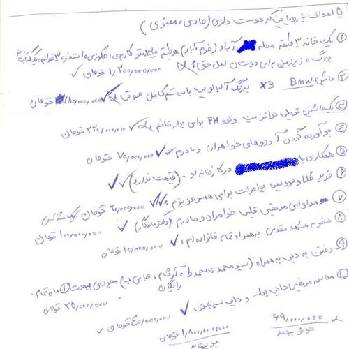 در سیستمهای هرمی از جمله گولد کوئست افراد مجبور میشوند تمامی آرزوهای خود را با جزئیات بنویسند و هر هفته نیز آنها را بازنویسی و در جلسات هفتگی با صدای بلند برای دیگران بخوانند ؛ به اعضای ساده دل القا میشود که هر آرزویی که دارید در شبکه هرمی برآورده میشود. در این تصاویر، روی کلماتی که میتواند معرف هویت افراد باشد خط کشیده ایم.