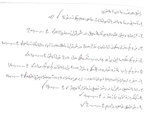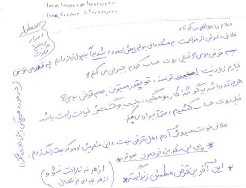 آنچه در زیر میآید، بخشهایی از نوشتههای این افراد است که در خانههای هرمی شهرک غرب و سعادت آباد به دست آمده است و نشان میدهد که این افراد، در چه عوالمی سیر میکردند و اکنون چیزی جز آرزوهای بر باد رفته ندارند.